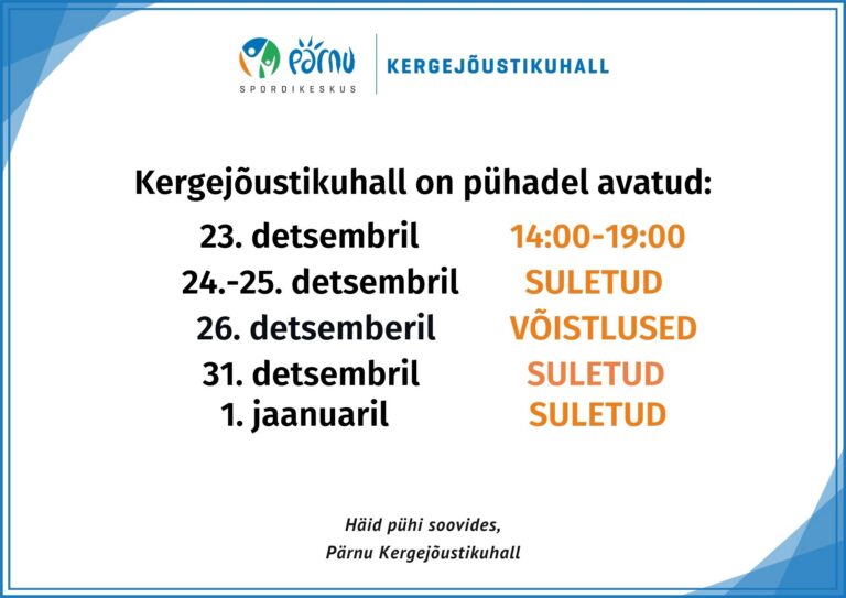 Kergejõustikuareen Jõusaal Korvpalliväljak Võrkpalliväljak Jooksurada Sulgpalliplats Saun Pärnus